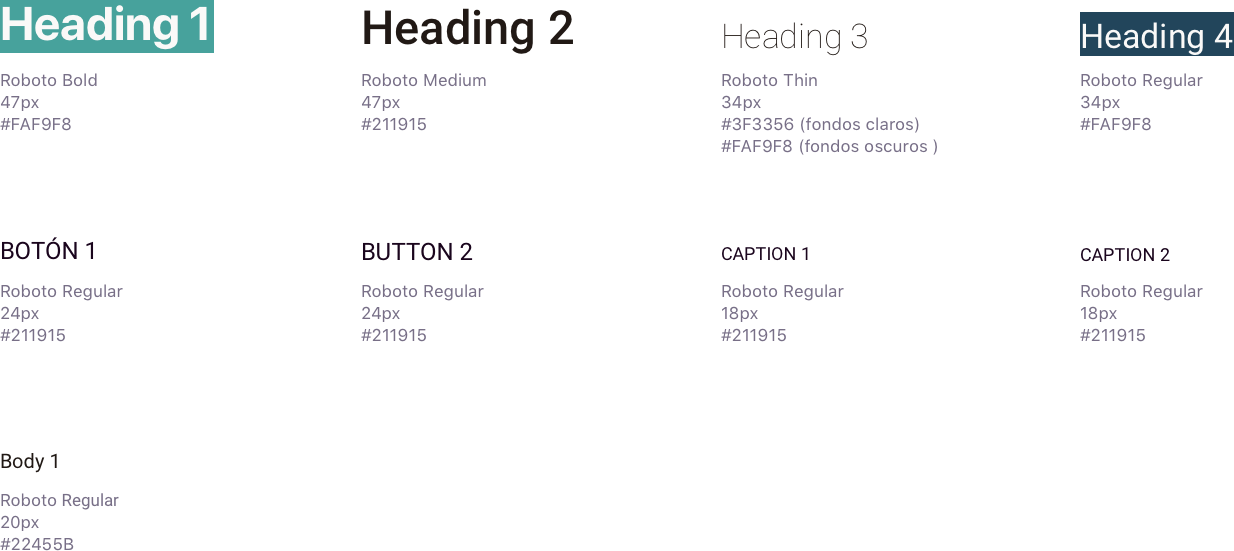 Personas, Guía de estilo: retícula, tipografía, gama cromática, elementos de interacción, iconos.