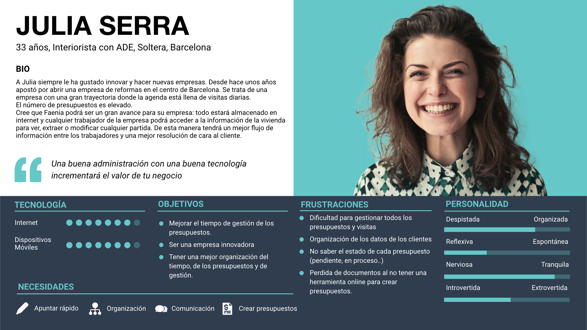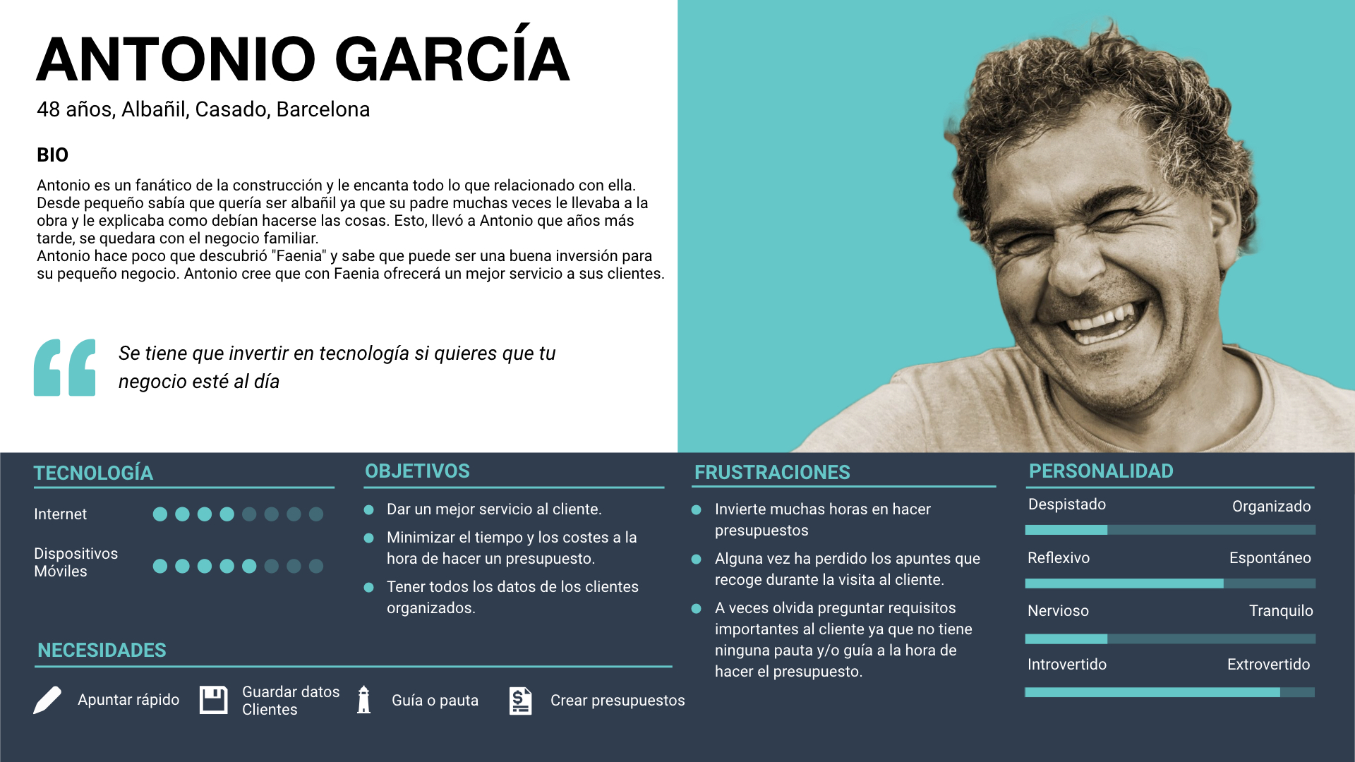 En esa época, mi pareja y yo queríamos realizar unas reformas en casa y después de contactar con varios profesionales del sector para que nos hicieran presupuestos detecté que tenían un problema con el tiempo de entrega del precio de la reforma. Esto me llevó a la idea de que quizás necesitarían un sistema mucho más efectivo para que el operario redujese el tiempo invertido en hacer presupuestos y el cliente no tuviera largas esperas para saber el precio de la reforma. De ahí nació la idea de faenia y a partir de ahí había que poner en la mesa todo el material para desarrollar una solución al problema detectado.